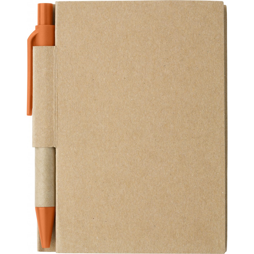 Kis füzet 80 vonalas lappal és karton toll fekete tollbetéttel.