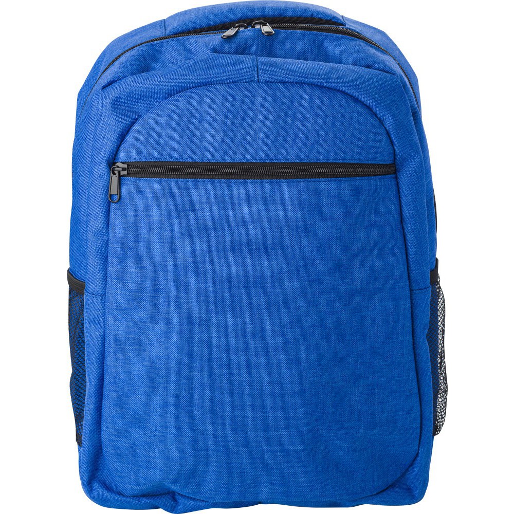 Hátizsák cipzáras elsőzsebbel és állítható vállpántokkal. Belső zseb laptop számára 15"-ig. 2 oldalon hálós zseb. 600D poliészter.