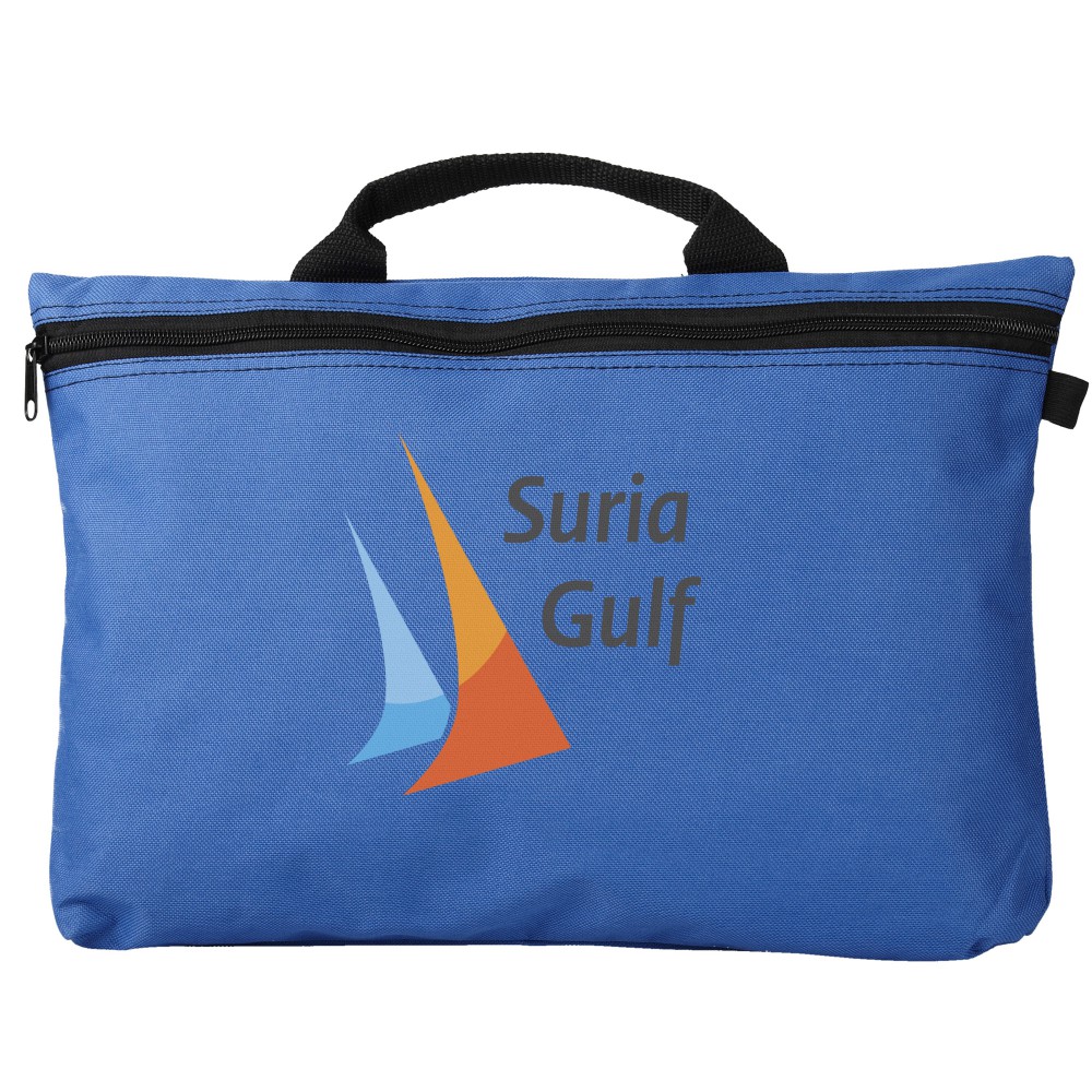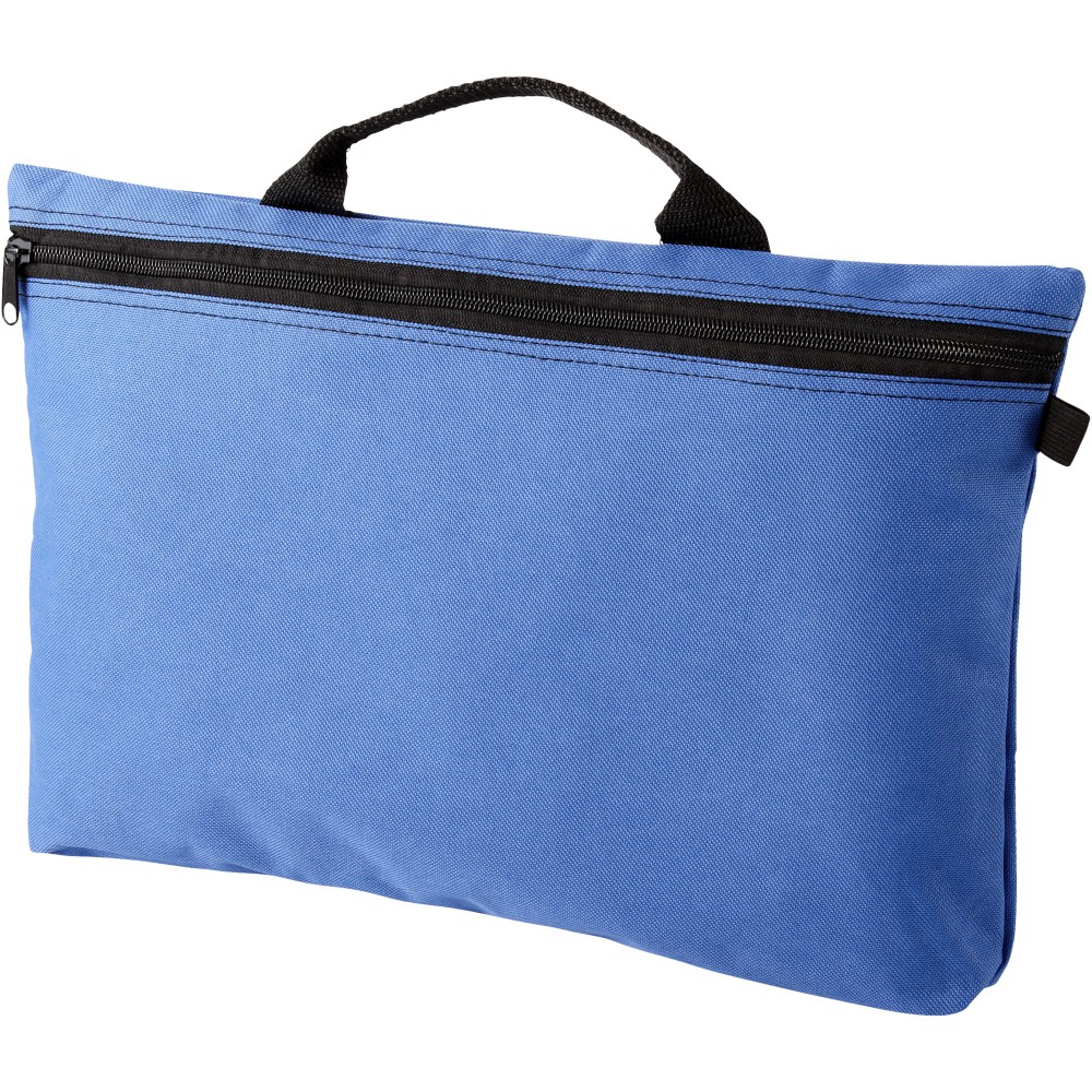Konferenciatáska erős füllel, cipzárral zárható, tolltartó hurkokkal a táska belsejében és kívül is. Ideális A4-es méretű kiadványokhoz. 600D poliészter.