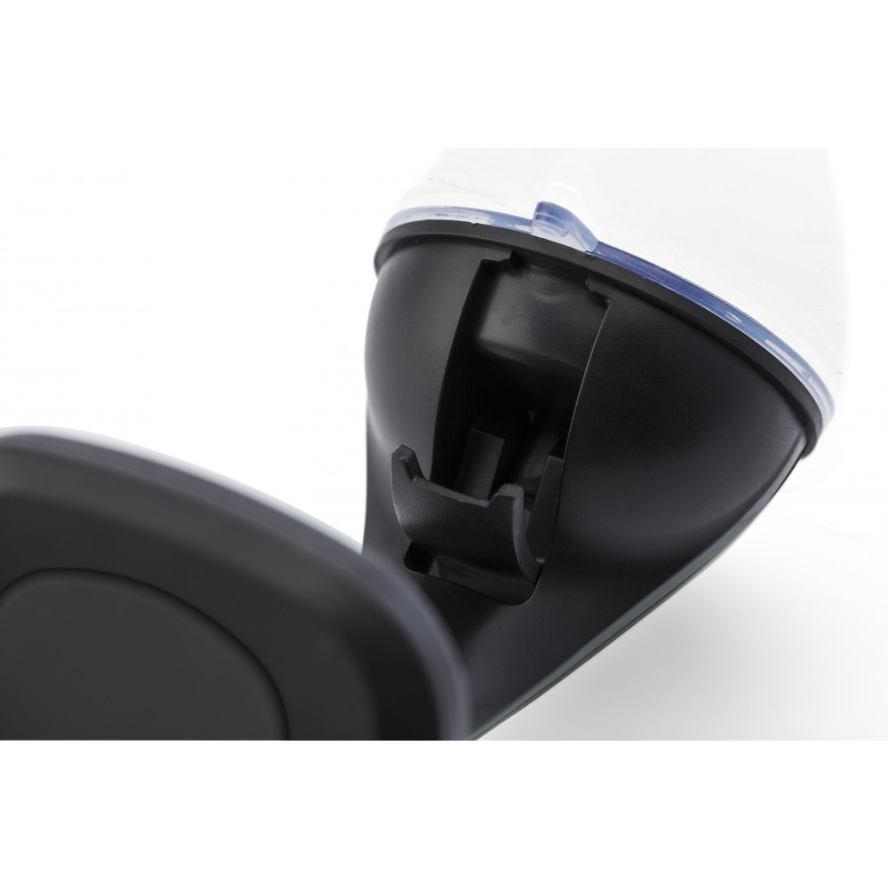 Állítható mobiltelefon-tartó, mely tapadókoronggal rögzíthető az autó szélvédőjére vagy műszerfalára. A telefon rögzítésére a két oldalsó kar szolgál, melyek max. 8,1 cm szélesre állíthatóak. A gomb megnyomásával a két befogó a legszűkebb állapotba áll vissza. Anyaga: ABS műanyag és gumi.