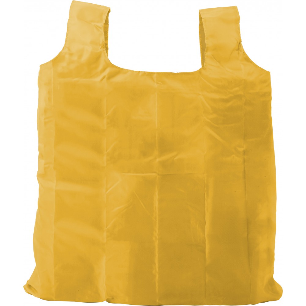 Összecsukható bevásárlótáska övre csatolható tokban. Táska nyitott mérete: 40 x 45 cm, a fül 12.5 cm hosszú. 190T poliészter.