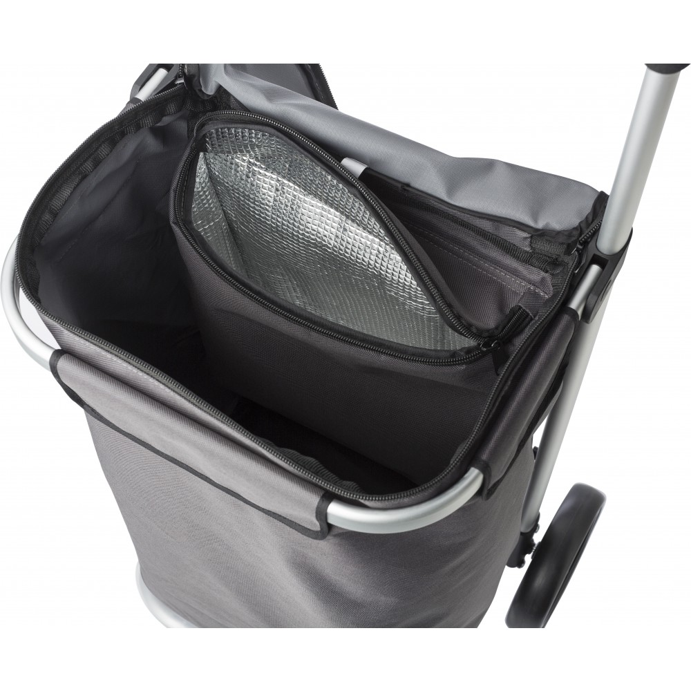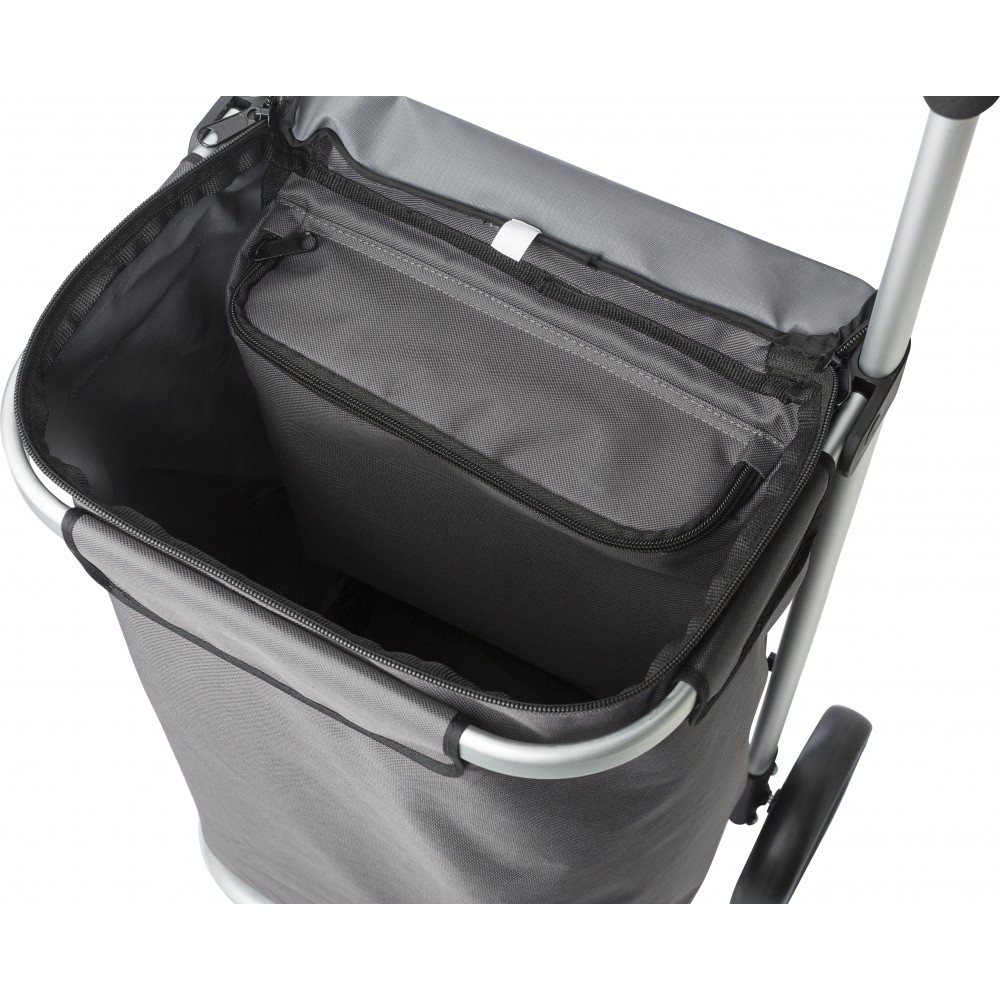 Bevásárlókocsi. Gurulós bevásárlókocsi alumínium vázzal, EVA fogóval, Oxford anyagból. Összeszerelést igényel.