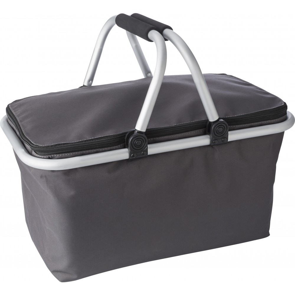 Bevásárlókosár és hűtőtáska. Összecsukható kosár belül fóliával szigetelt anyagból, cipzáros záródással, alumínium vázzal, EVA fogóval, Oxford anyagból.