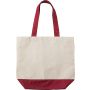 Bevásárlótáska vagy strandtáska belső zsebbel, színes füllel és alsó résszel. 280 g/m2 vászon anyag.