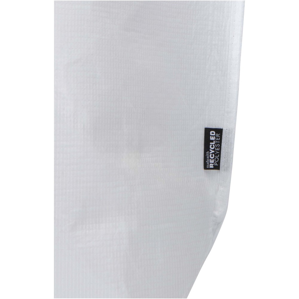 Duplán laminált aljú bevásárlótáska 150 g/m2 súlyú, GRS tanúsítvánnyal rendelkező, újrahasznosított RPET anyagból készül. A dupla laminálásnak köszönhetően a táska fokozott tartóssággal és vízlepergető tulajdonságokkal rendelkezik, így megbízható megoldást nyújt a mindennapi használat során. A termék tágas, nyitott főrekesszel, megerősített hordfülekkel és extra kapacitást biztosító széles alsó résszel rendelkezik. A 18 literes űrtartalmú táska teherbírása 10 kg, így esztétikus és praktikus választás bevásárláshoz, szakvásárokra vagy reprezentatív céges eseményekre. Az újrahasznosított alapanyag révén kiválóan alkalmas öko-szemléletű emblémázott ajándéknak.