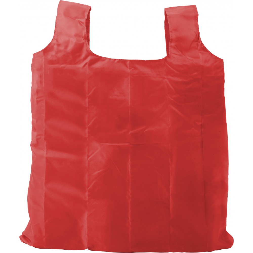 Összecsukható bevásárlótáska övre csatolható tokban. Táska nyitott mérete: 40 x 45 cm, a fül 12.5 cm hosszú. 190T poliészter.