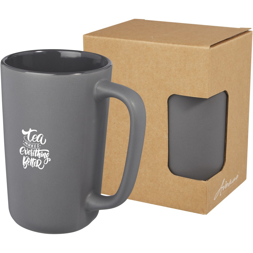 Nagy, modern kerámia bögre matt külsővel. A Perk bögre nagy felülettel rendelkezik, ideális a logózáshoz. Mosogatógépben mosható. Űrtartalma 480 ml. Újrahasznosított karton díszdobozban. Kerámia.
