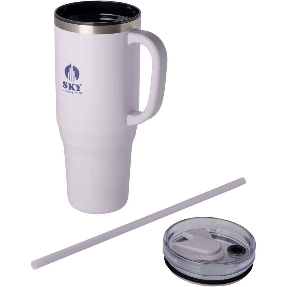A Melbourne pohár tartós, duplafalú kialakítással rendelkezik, amely bármilyen környezetben képes az italokat melegen vagy hidegen tartani. A pohár belső fala újrahasznosított műanyagból készült, míg a külső fala RCS tanúsítvánnyal rendelkező újrahasznosított rozsdamentes acélból. A pohár 1200 ml-es űrtartalommal rendelkezik, amely stílusosan biztosítja a napi hidratáltságot. Cseppmentes, nyomófedeles kialakítással rendelkezik, két nyílással és forgatható zárómechanizmussal. Élelmiszeripari minőségű újrahasznosított szívószállal szállítjuk. Kézi mosogatás javasolt. Stanley hasonmás.