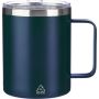Rozsdamentes acél duplafalú (S/S304) bögre (300 ml) matt felülettel. PS fedél a felső oldalon zárással. A bögre elülső oldalán újrahasznosított rozsdamentes acél logó jelzi az alapanyag milyenségét. Barna kartondobozba egyedileg csomagolva érkezik. Űrtartalom: 300 ml.