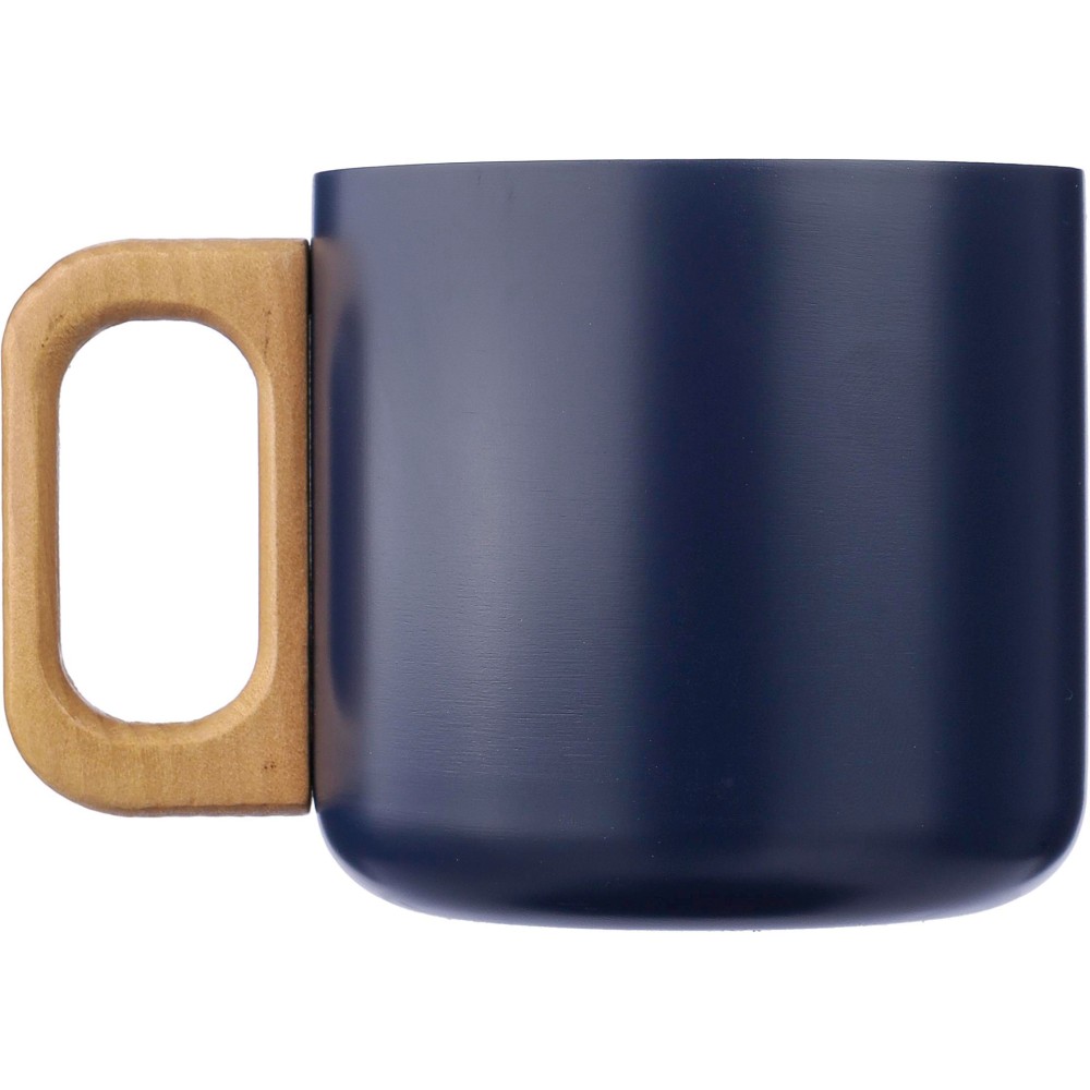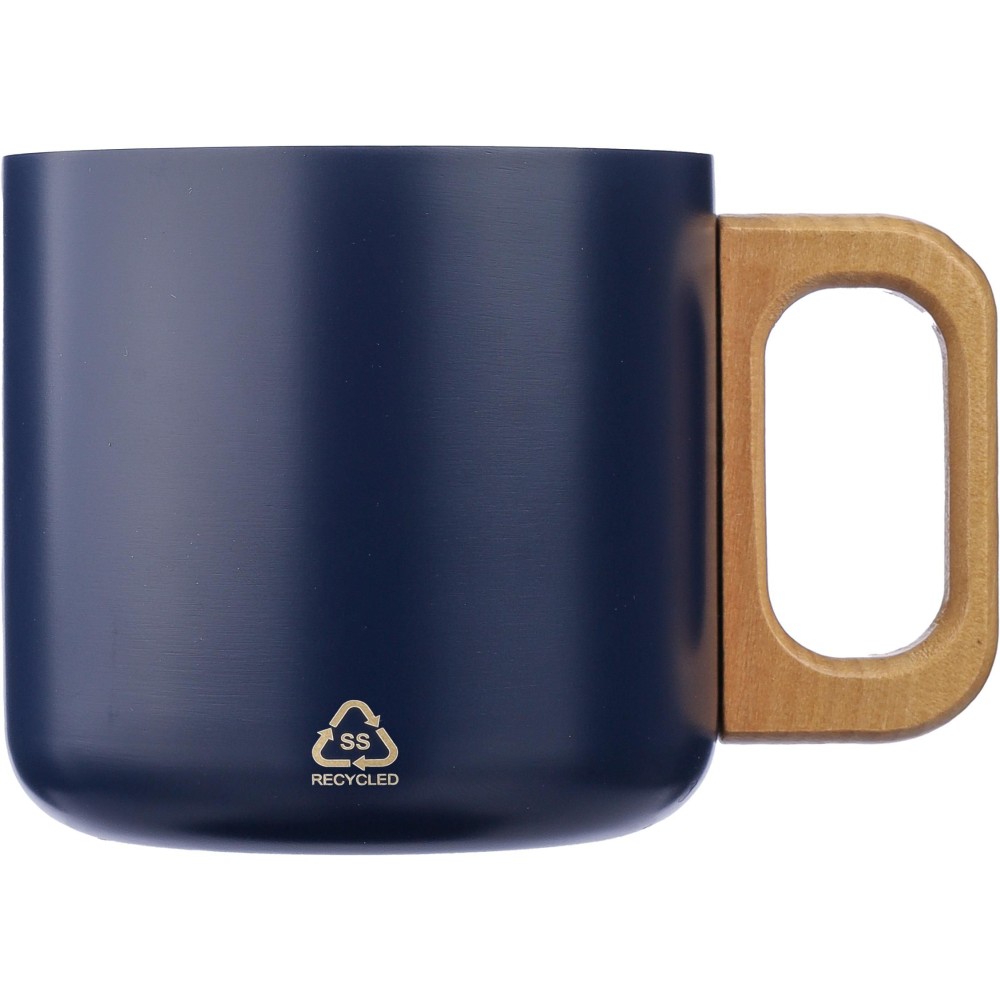 Duplafalú bögre fa fogantyúval. Mosogatógépben nem mosható. Gravírozott újrahasznosított rozsdamentes acél logóval. Egyenként barna kartondobozba csomagolva. Anyaga: újrahasznosított rozsdamentes acél. Űrtartalom: 400 ml.