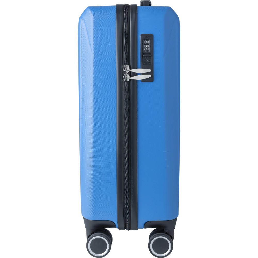 Keményfedeles ABS gurulós bőrönd 8 kerékkel (4x2), és háromszintű fém fogantyúrendszerrel. Felső műanyag fogantyút, számkombinációs zárat és 3M ragasztócsíkkal rögzíthető gravírozható táblát tartalmaz. A belső bélés anyaga 210D, a táskán belül 3 rekesz áll rendelkezésre: U-cipzáras zseb, hálós zseb és X-alakú, csattal záródó gumis heveder. Űrtartalom: 30 liter. Csomagolása barna papírdoboz.