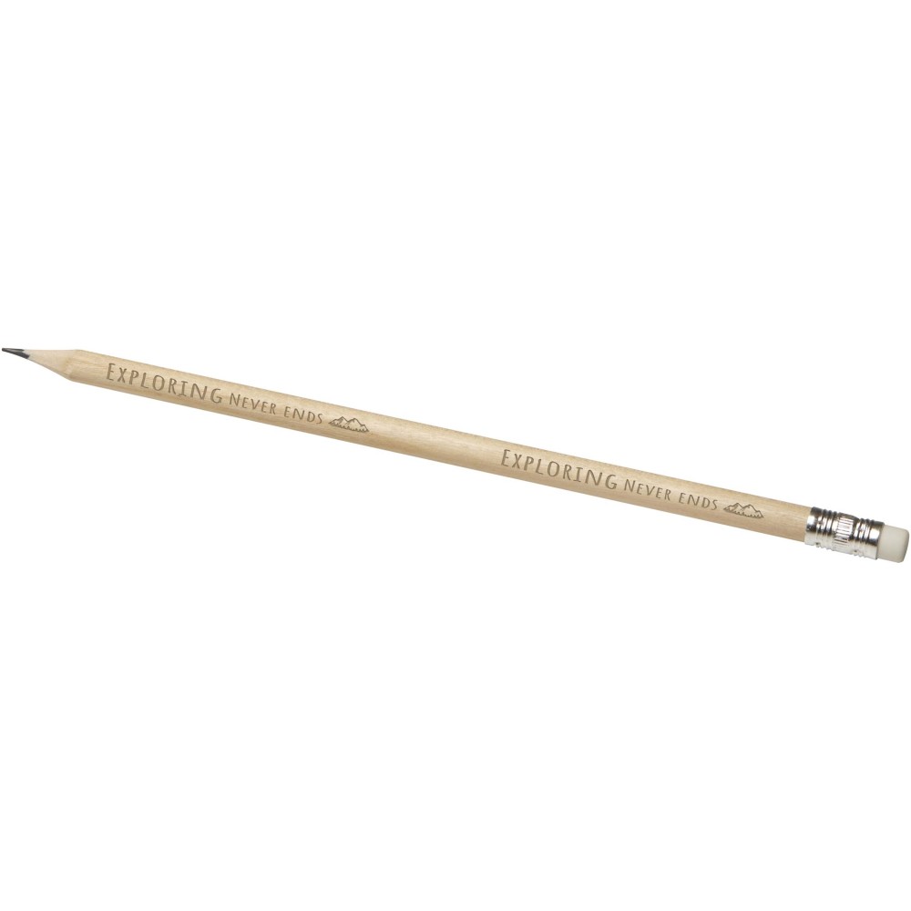 Ceruza radírral. A ceruza nyárfából készült, a radír grafitból, a foglalat pedig alumíniumból.