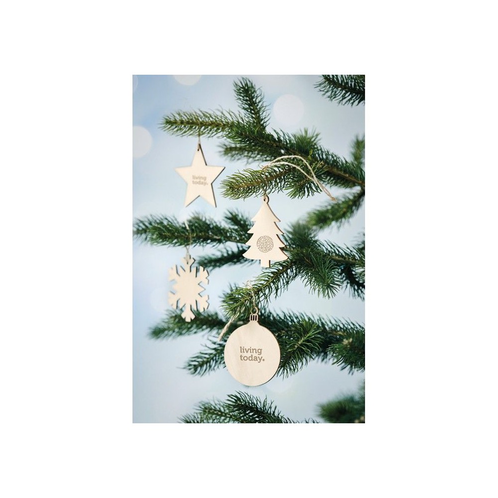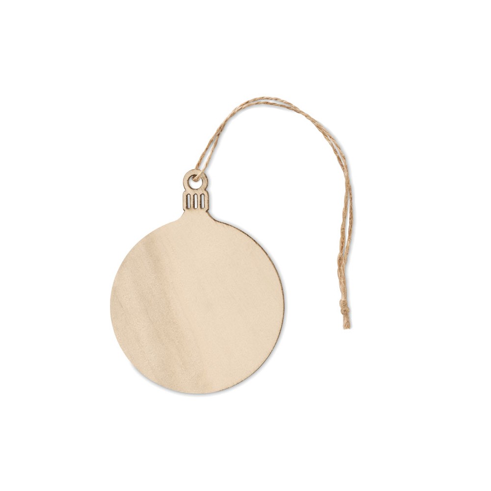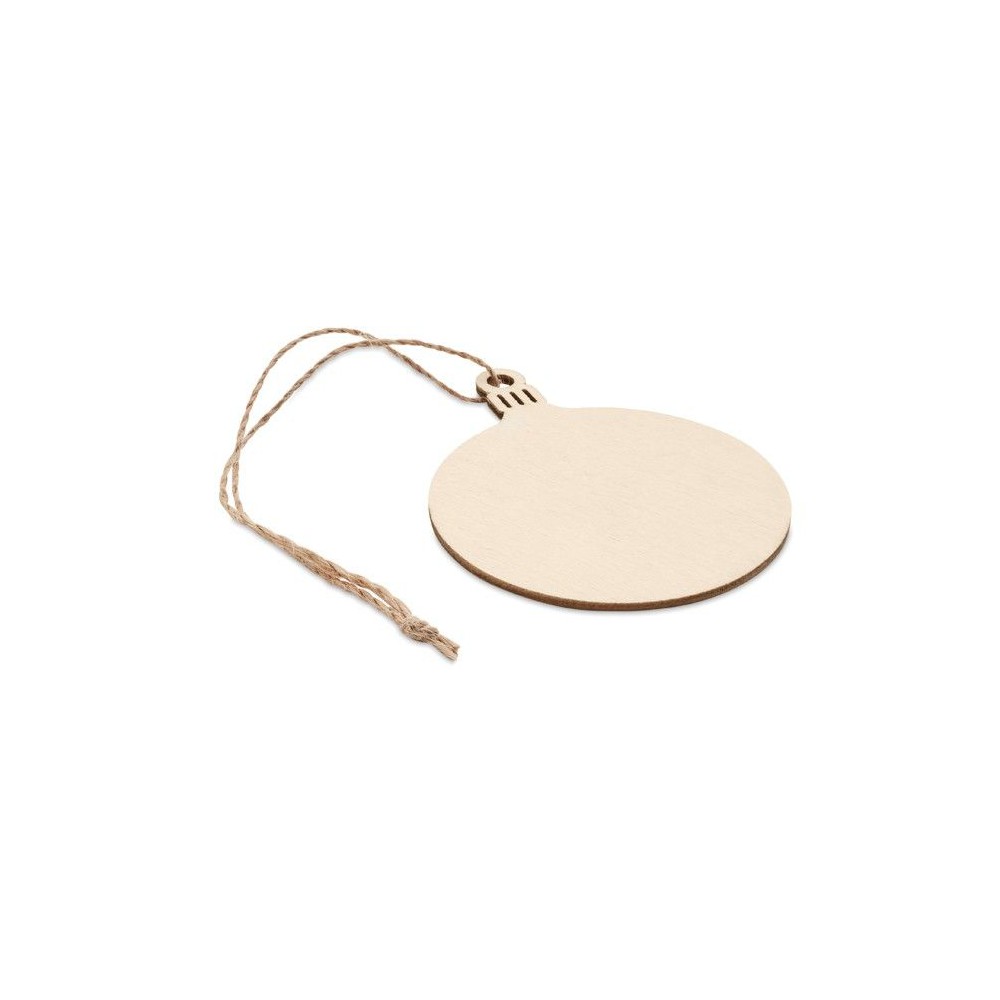 MDF fából készült kör alakú karácsonyfadísz, juta zsinórral.
