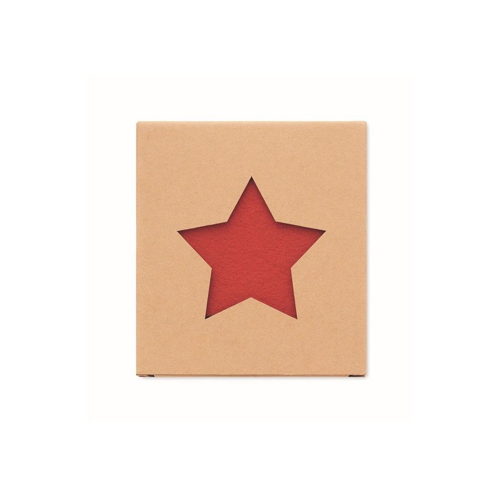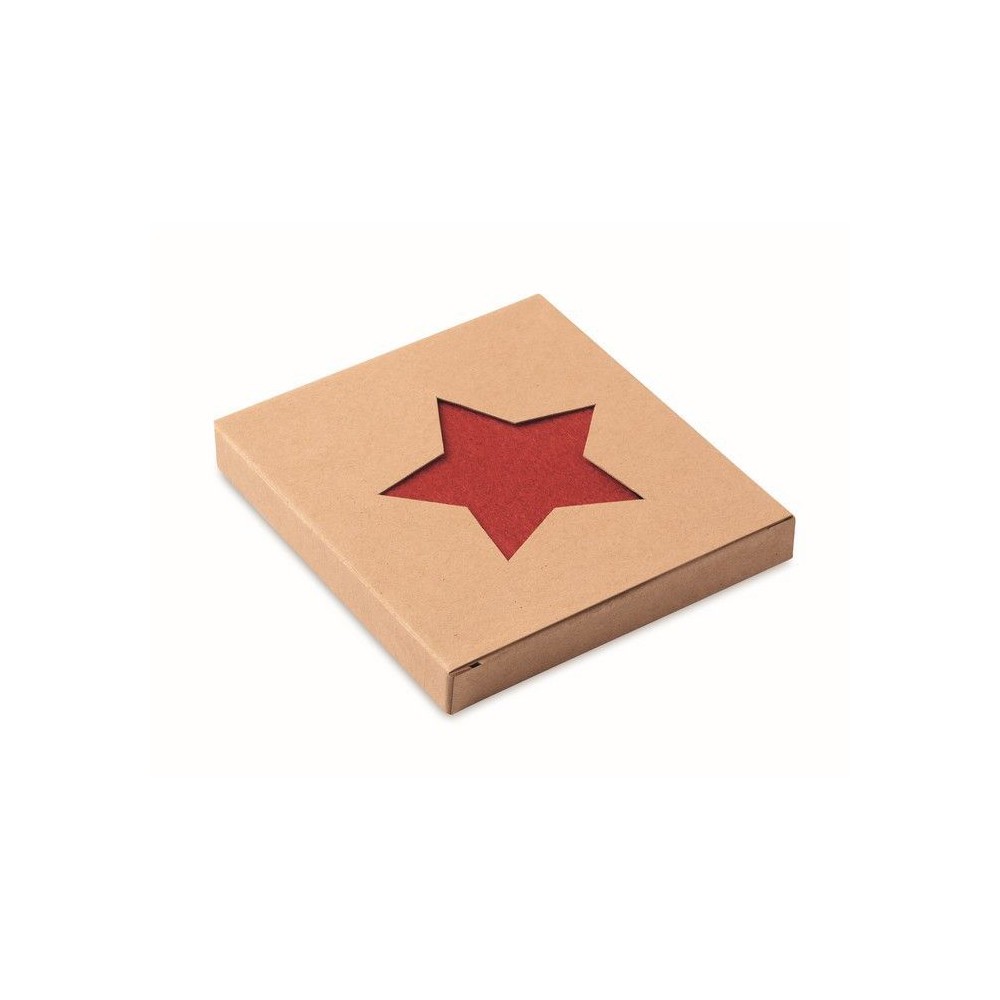 4 darab RPET filcből készült, csillag alakú poháralátétből álló készlet, kraftpapír dobozban.