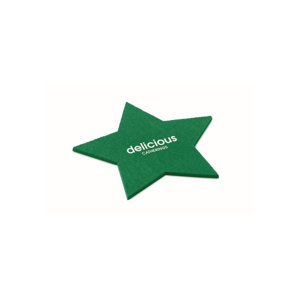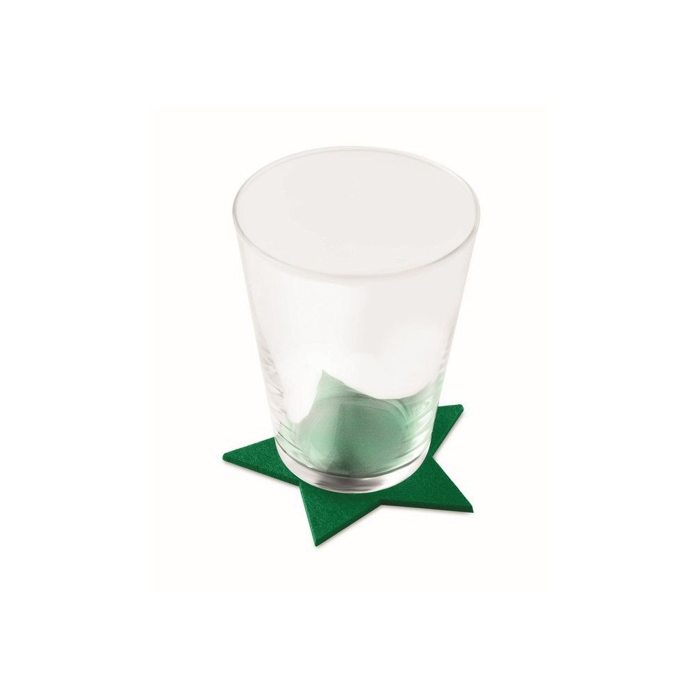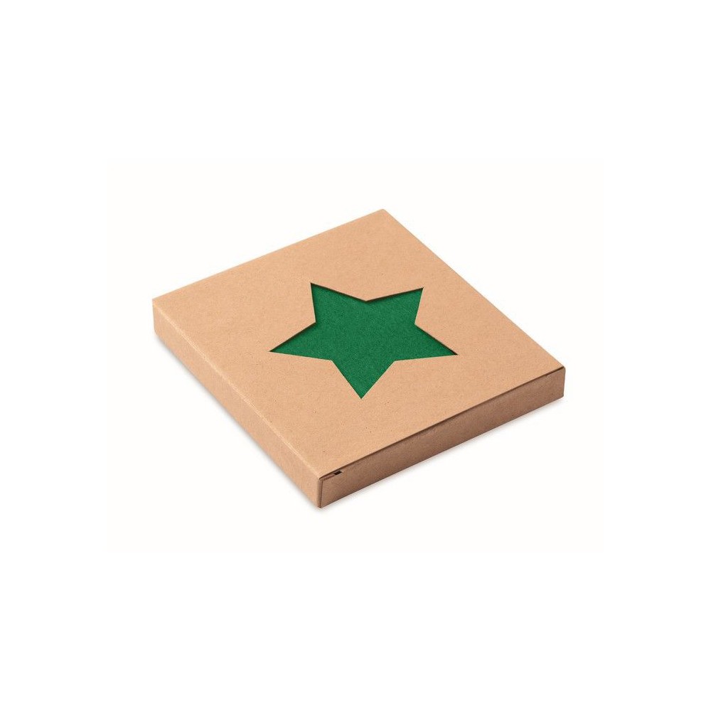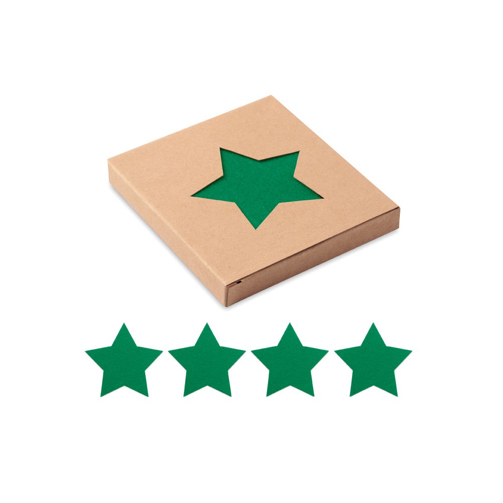 4 darab RPET filcből készült, csillag alakú poháralátétből álló készlet, kraftpapír dobozban.