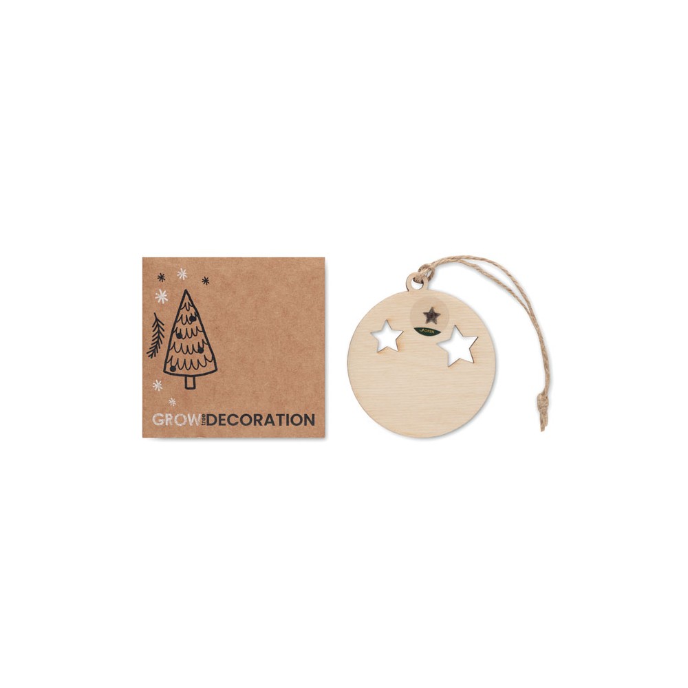 Fából készült gömbdísz alakú függeszték juta zsinórral, lucfenyő magokkal. Kraft borítékban. EU-ban gyártva.