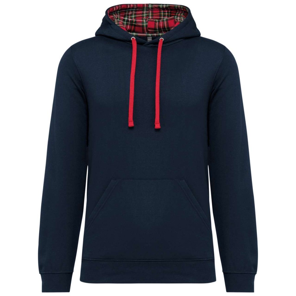 Kariban Uniszex kapucnis pulóver, Navy/Red Tartan