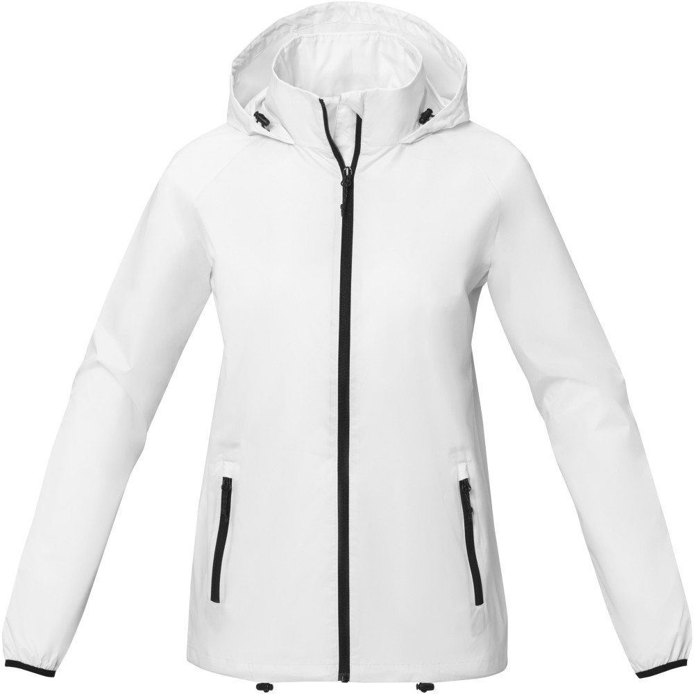 Könnyű női dzseki. Egyedi belső emblémázási lehetőségek. Letéphető, kivágható címke a címke nélküli kényelemért. 500 mm vízálló. Raglan ujjak. Behajtható kapucni. Fordított cipzár. Elülső zsebek cipzárral. Belső zseb. Állítható húzózsinór megállítóval az alsó szegélyben és a kapucniban. 280T ripstop 100% nylonból, 72 g/m2, bélés, 210T taft 100% poliészterből, 60 g/m2.