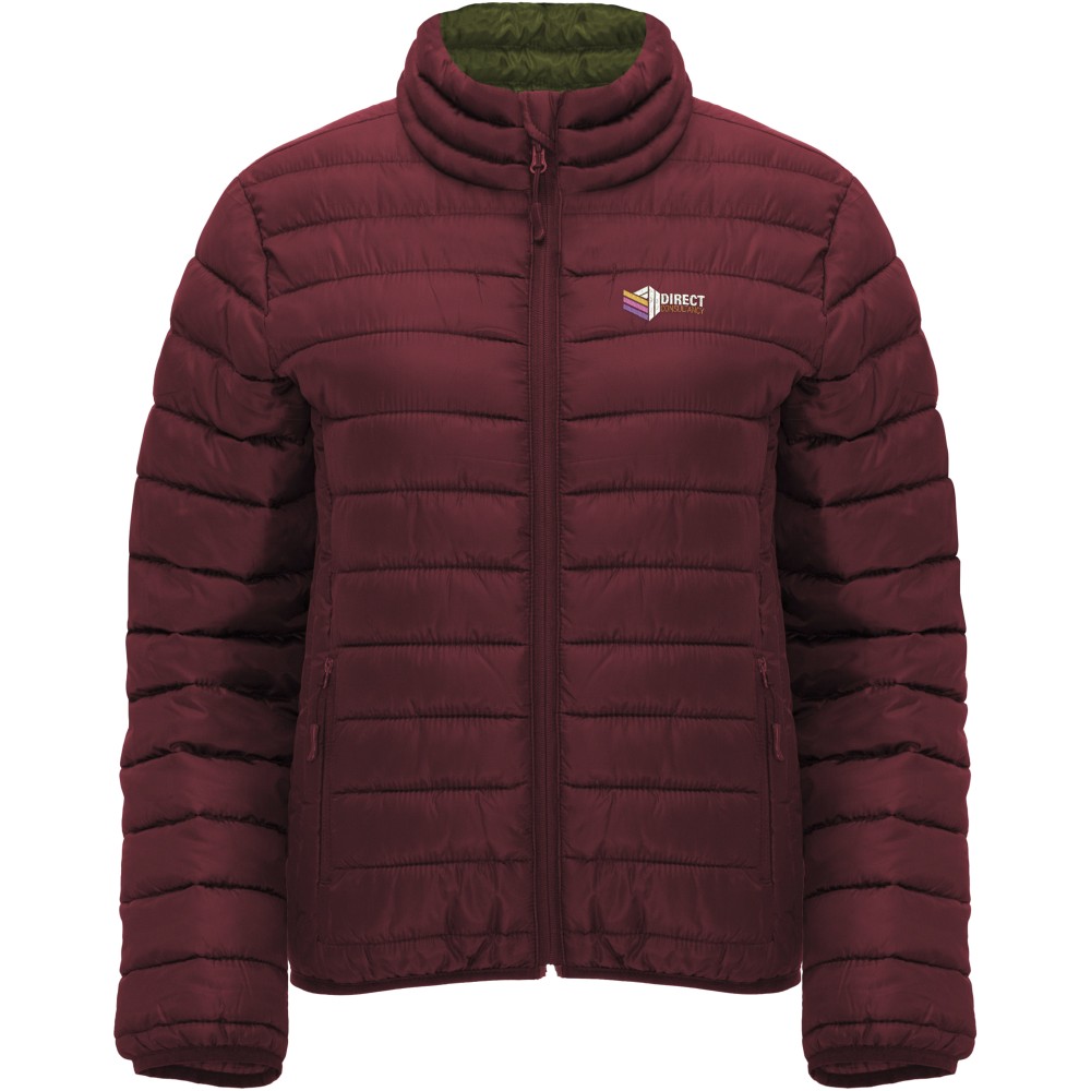 Női, karcsúsított, steppelt dzseki tollszerű tapintású töltettel, tasakkal. Fordított cipzárak, színben illeszkedő állvédővel és cipzárral. Két cipzáras elülső zseb. Gumis szegély a galléron, a kézelőn és az aljon. Kontrasztos színű bélés. Könnyű és összehajtható ruhadarab. Vízálló. Szélálló. 100% poliészter, 290 g/m2. Bélés és töltet: 100% poliészter.
