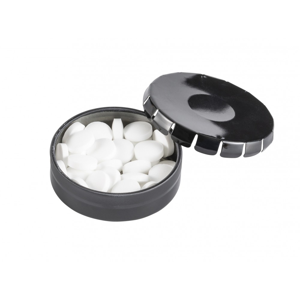 Pattintós fém cukorkásdoboz. 12 g cukormentes mentolos cukorkával.