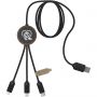 3 az 1-ben újrahasznosított PET világító logóval ellátott meghosszabbított töltőkábel kerek bambusz burkolattal. A világító logó mindkét oldalán látható. 3 csatlakozóval (C típusú, micro USB, iPhone) és kettős USB csatlakozóval rendelkezik az univerzális használatra. TPU tasakban, nátronpapír kártyával szállítjuk. Kábel hossza: 1 méter.