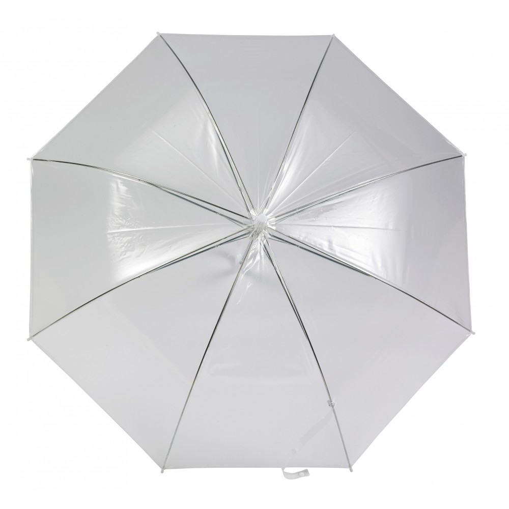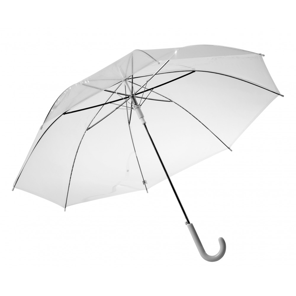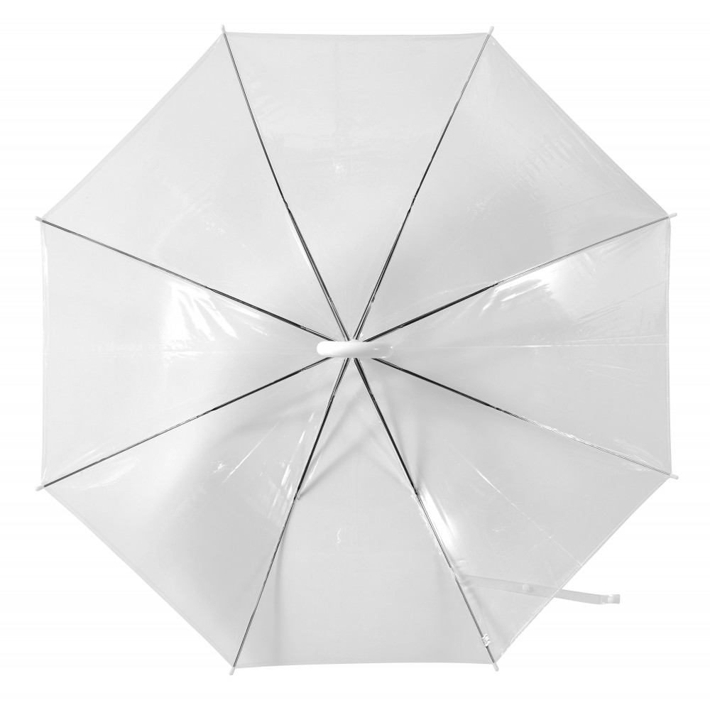 8 paneles átlátszó, automata esernyő fém vázzal, műanyag nyéllel. POE anyag.