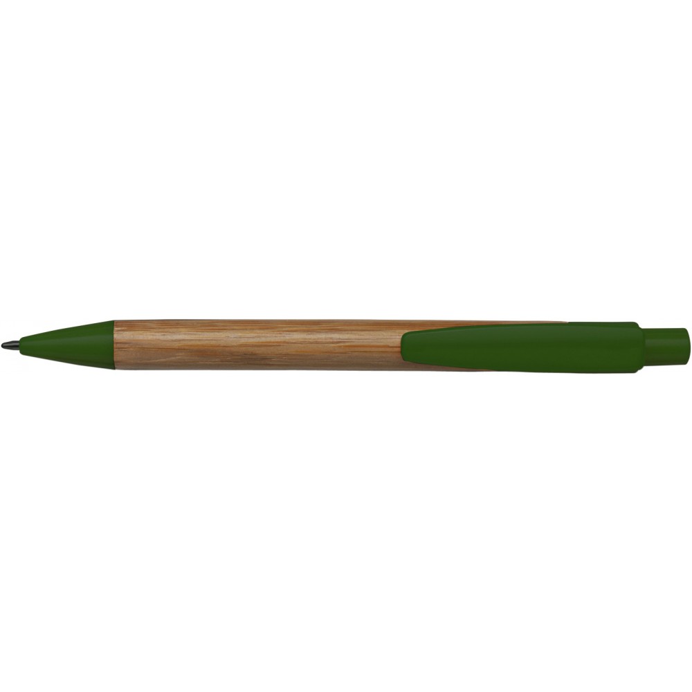 Bambusz golyóstoll műanyag kiegészítőkkel, kék tollbetéttel.