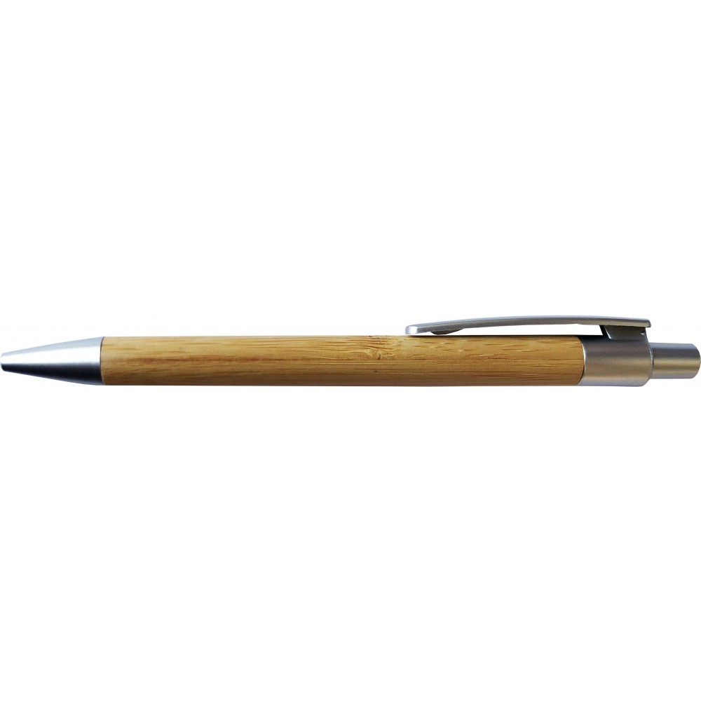 Bambusz golyóstoll műanyag kiegészítőkkel, kék tollbetéttel.