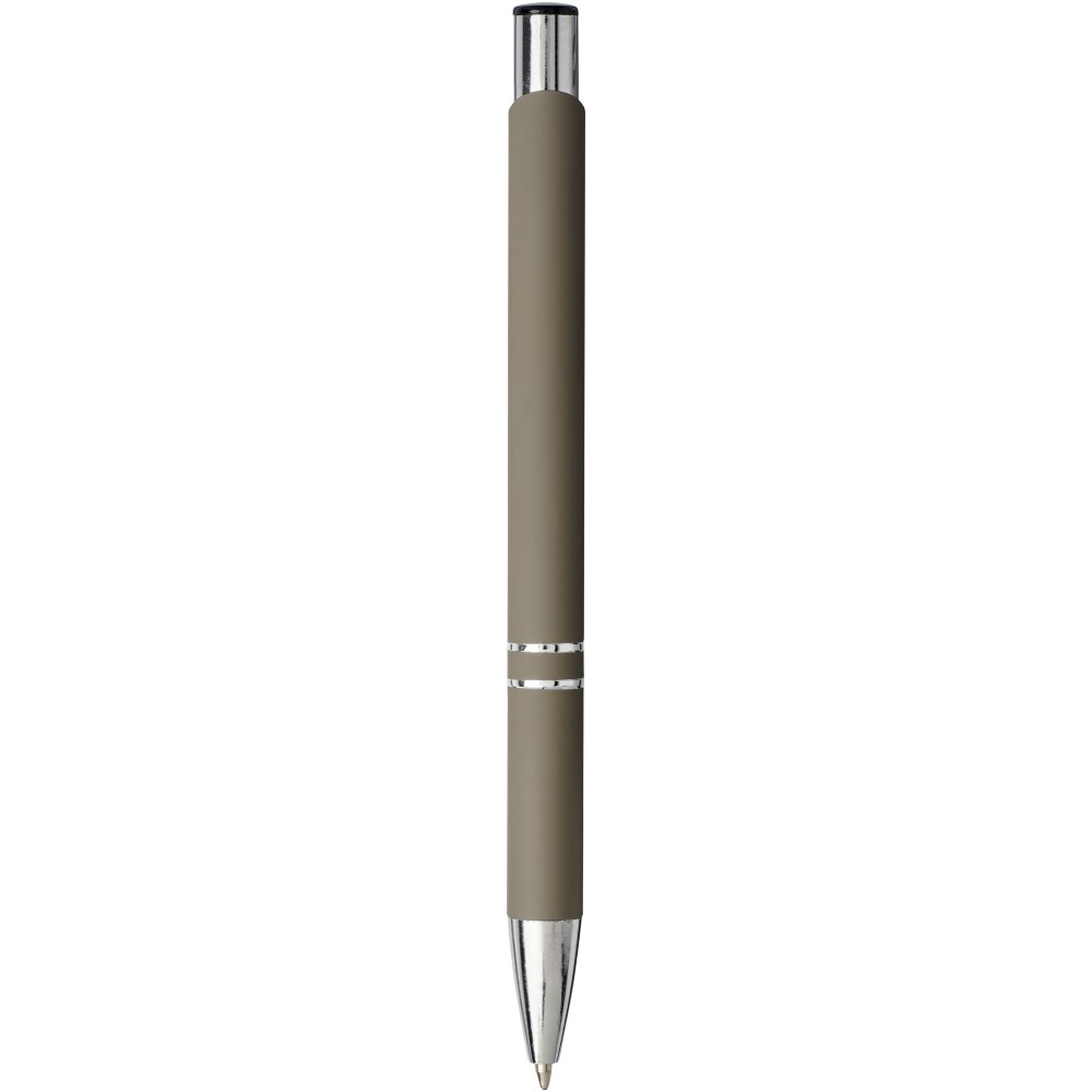 Nyomógombos golyóstoll puha tapintású bevonattal. Lézergravírozáskor megjelenik a toll fényes króm, felület alatti rétege. Fekete tollbetéttel.