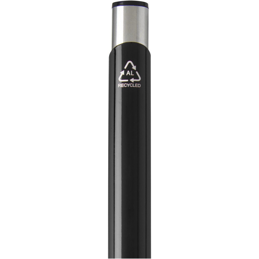 Újrahasznosított alumíniumból készült golyóstoll lakkozott, fényes felülettel és feltűnő króm részletekkel. Az újrahasznosított alumínium kevesebb energiát igényel, mint az alumínium nyersanyagokból történő előállítása, ami fenntarthatóbbá teszi a gyártást. Csökkenti a szemétlerakókba kerülő hulladék mennyiségét és segít a természeti erőforrások megőrzésében, az üvegházhatást okozó kibocsátás csökkentését célozva. Fekete tollbetéttel. Íráskapacitás: 600 méter. Újrahasznosított alumínium, ABS műanyag, vas.