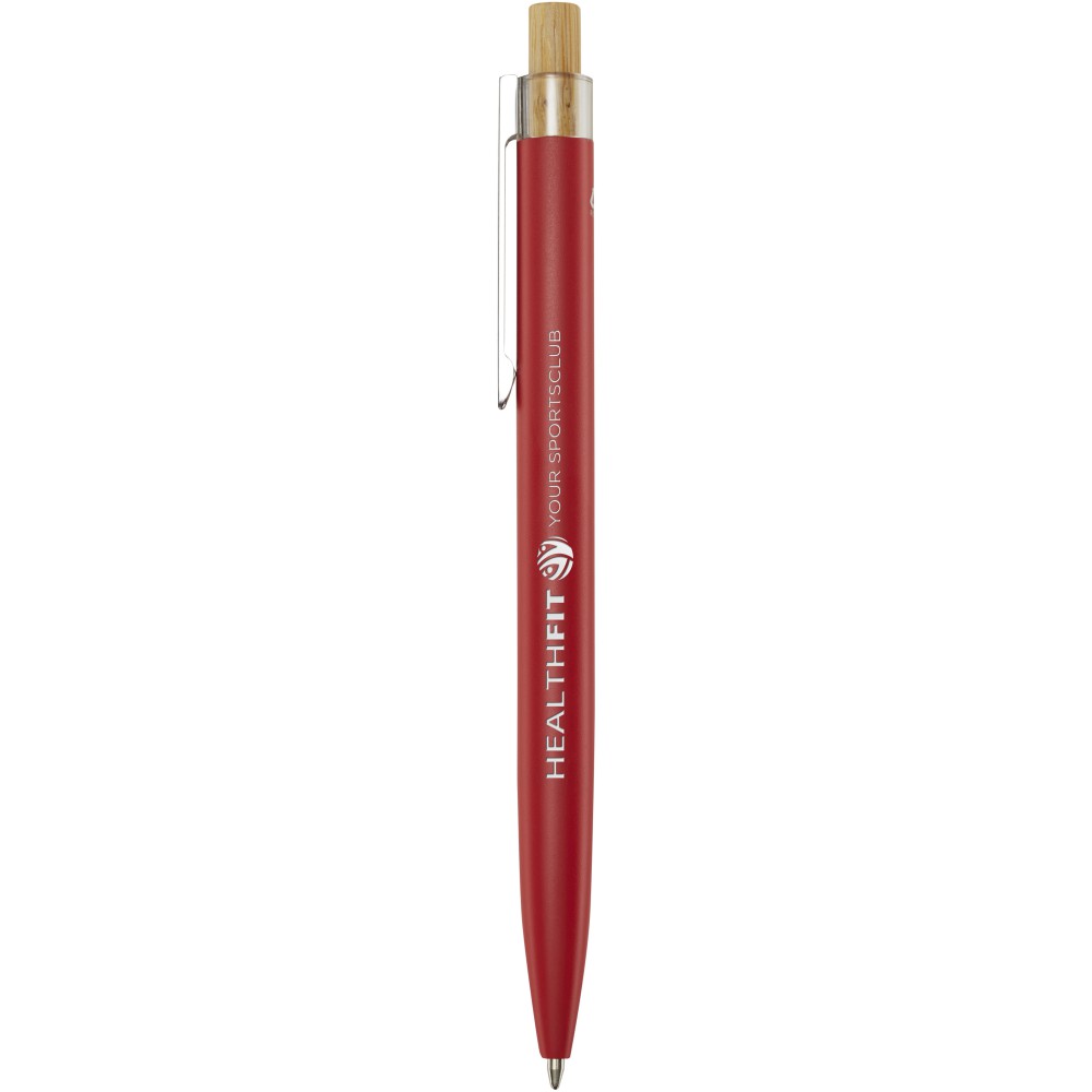 A Nooshin golyóstoll újrahasznosított alumíniumból készül, ami kevesebb energiát igényel, mint az alumínium nyersanyagból történő előállítása. Emellett csökkenti a hulladéklerakókba kerülő hulladék mennyiségét és hozzájárul a természeti erőforrások megőrzéséhez, amelynek célja az üvegházhatású gázok kibocsátásának csökkentése. A nyomógomb bambuszból készült. Tollbetét színe: fekete. Íráshossz: 800 méter. Tollhegy mérete: 1,00 mm.
