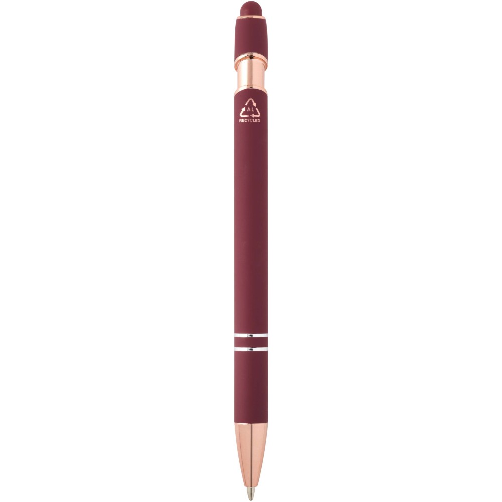 Nanna golyóstoll elegáns rózsaarany színben. A toll teste újrahasznosított alumíniumból, az érintőceruza pedig szilikonból készült, így érintőképernyős eszközökhöz is használható. Az újrahasznosított alumínium csökkenti a hulladéklerakók terhelését, segít megőrizni a természeti erőforrásokat, és célja az üvegházhatású gázok kibocsátásának mérséklése. Tinta színe: kék. Íráshossz: 800 méter. Tollhegy mérete: 1,0 mm.