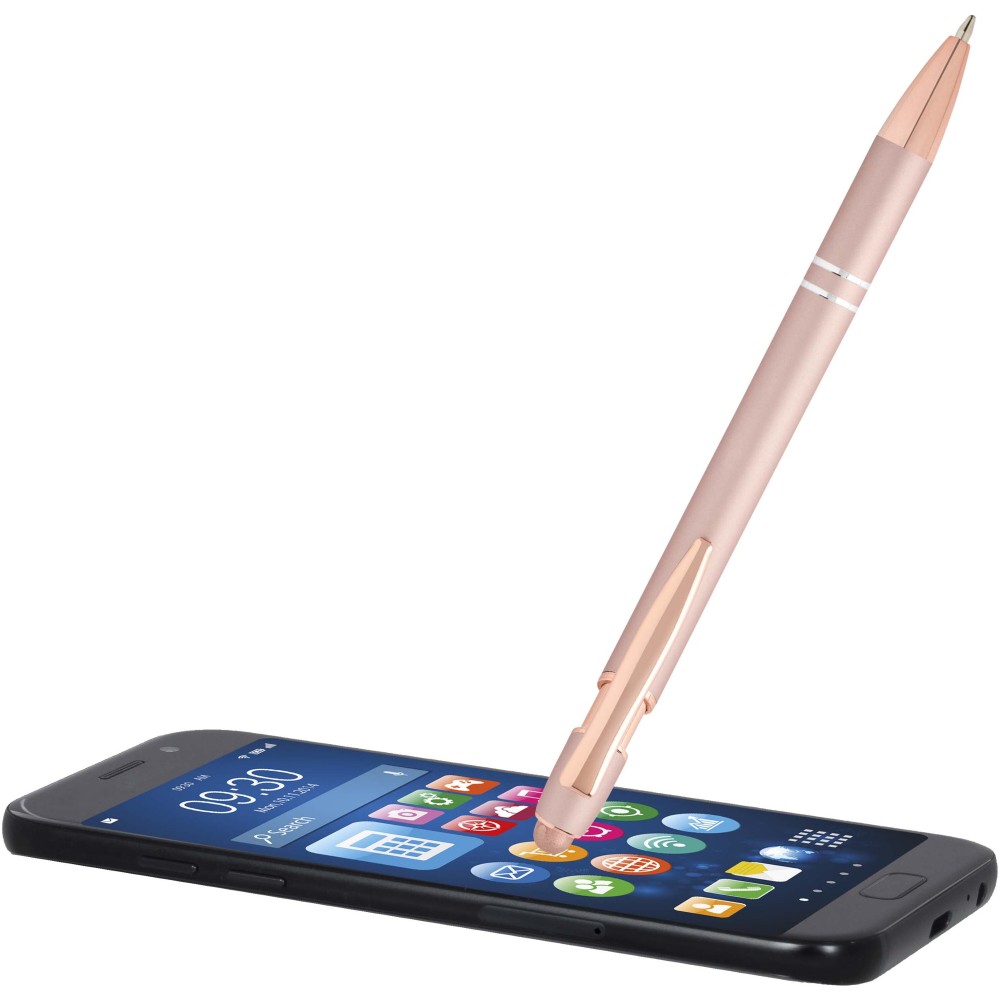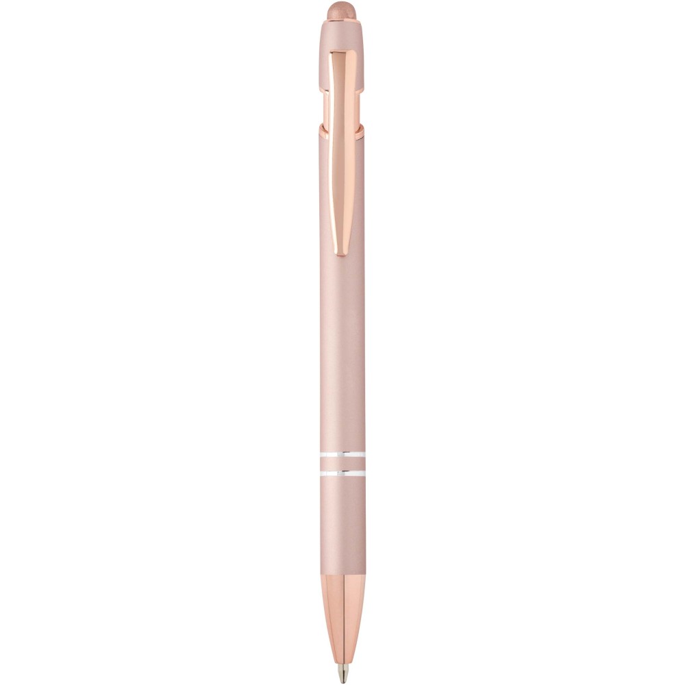 A Nanna golyóstoll rózsaarany bevonattal újrahasznosított alumíniumból készült tolltesttel és szilikon, érintőképernyős véggel rendelkezik. Az újrahasznosított alumínium csökkenti a hulladék mennyiségét a lerakókban, hozzájárul a természeti erőforrások megőrzéséhez és a károsanyag-kibocsátás mérsékléséhez. Tinta színe: fekete. Íráshossz: 800 méter. Tollhegy mérete: 1,0 mm.