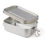 Rozsdamentes acél (s/s304) uzsonnásdoboz (750 ml) csatos zárással. Egyenként barna kartondobozba csomagolva.