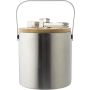 Duplafalú jegesvödör bambuszfedéllel és rozsdamentes acél fogantyúval. A belső 304-es, a külső pedig 201-es rozsdamentes acélból készült. Jégcsipesszel, 1200 ml-es űrtartalommal. Csomagolása barna papírdoboz.