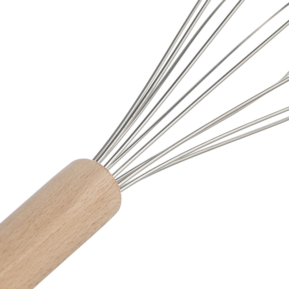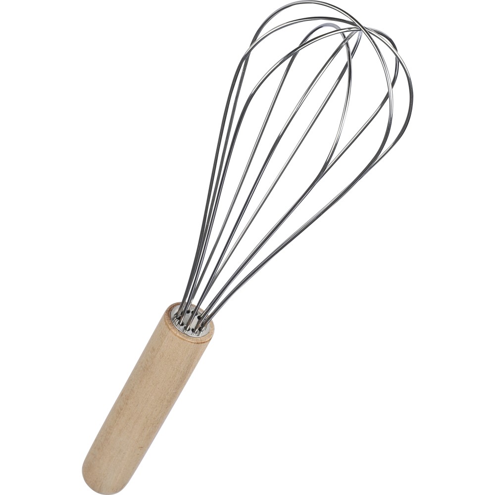 Rozsdamentes acél kézi habverő bükkfa nyéllel. Ideális a mindennapi főzési feladatokhoz. Nagy kiszerelésben szállítjuk.