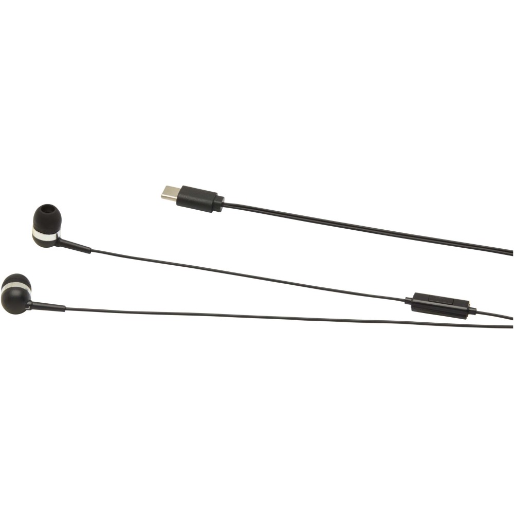 Vezetékes Type-C fejhallgató kiváló hangminőséggel, beépített mikrofonnal a telefonhívásokhoz. Újrahasznosított műanyagból készült, stílusos tárolódobozban szállítjuk.