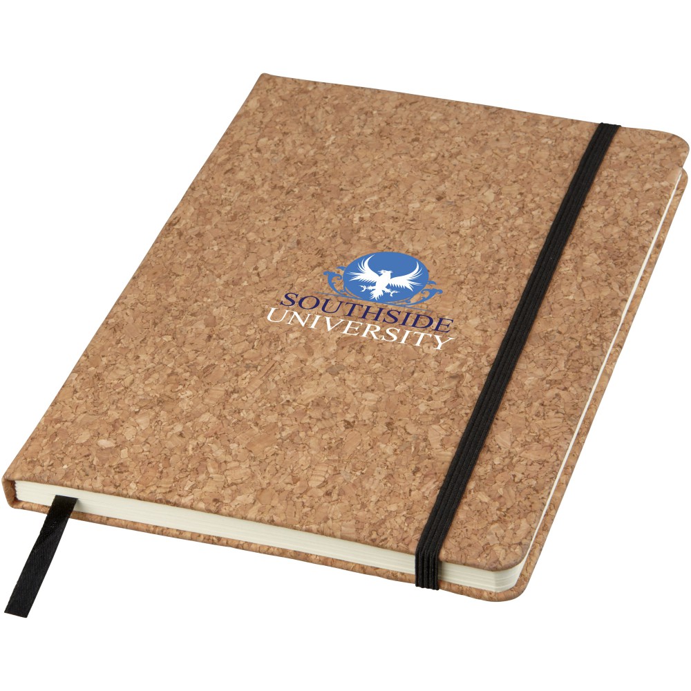 A5 méretű parafa borítású füzet. Fekete gumis pánttal és könyvjelzővel. 80 vonalas lapot tartalmaz.