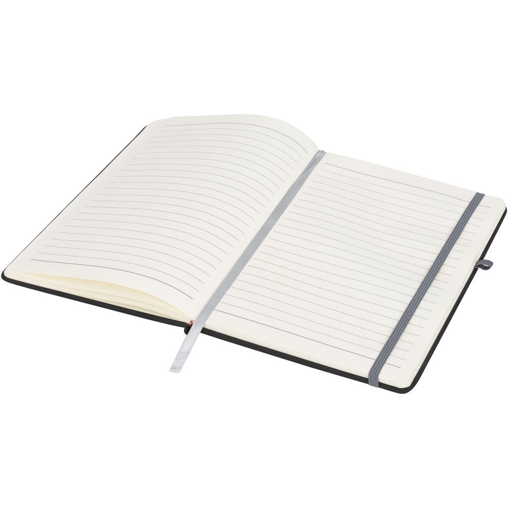 Puha felületű füzet színes gumipánttal, könyvjelzővel és tullhurokkal. 96 krémszínű vonalas lapot tartalmaz.