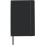 Puhafedelű, hajlékony borítójú füzet 80 vonalas lappal, a borító belsejében zsebbel, gumis záródással és könyvjelzővel. PU.