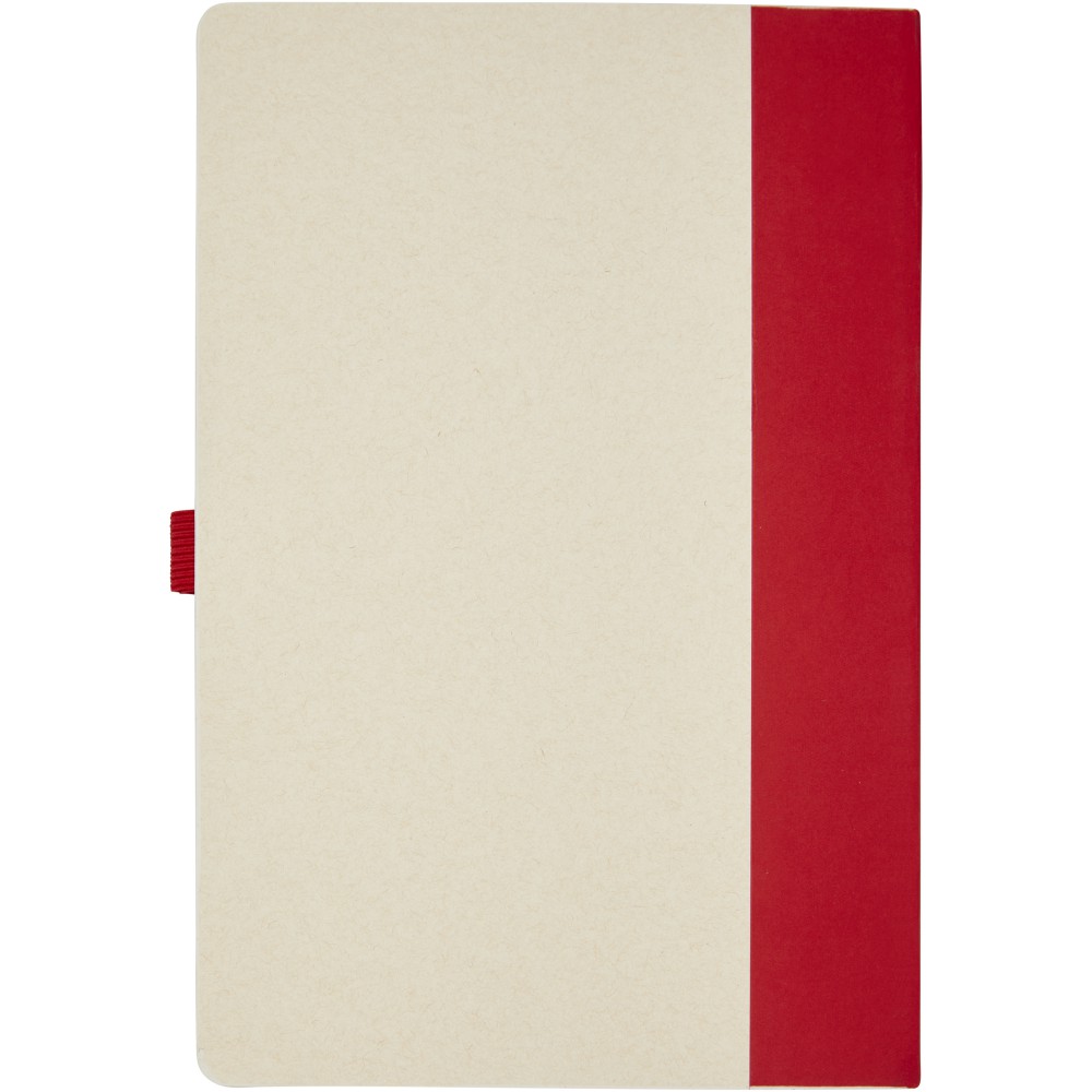 A5 méretű füzet és golyóstoll készlet. A jegyzetfüzet 80 vonalas lapot (80 g/m2) tartalmaz, amelyek újrahasznosított tejes kartondobozokból készülnek (akár 70%), színes papírgerinccel és egy tollhurokkal. A tollhurokban egy nyomógombos golyóstoll található a jegyzetfüzet színéhez illő színben. A toll teste ugyanabból az újrahasznosított anyagból készült, a gomb, a klipsz és a hegy pedig színes PLA műanyagból készült. A toll fekete tollbetéttel érkezik. A használt tejesdobozokat összegyűjtik, válogatják, feldolgozzák és papírrá alakítják, így a hulladékból hasznos termék készül.