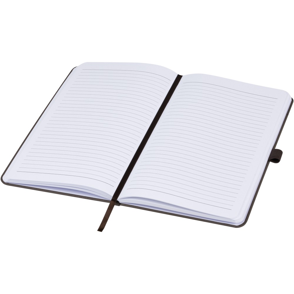 Könnyű, keményfedeles jegyzetfüzet a mindennapi jegyzeteléshez újrahasznosított alapanyagokból készült borítóval. A barna borító kávémaradványt, a zöld borító olajbogyó-maradványt, a fehér pedig kukoricamaradékot tartalmaz. 80 lap (70 g/m2) újrahasznosított fehér vonalas lapot tartalmaz.
