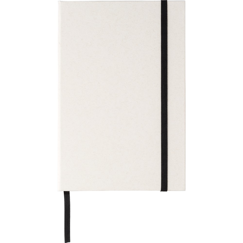 Újrahasznosított tejesdobozból készült A5-ös jegyzetfüzet 80 lappal, gumiszalaggal és könyvjelzővel. 70%-ban újrahasznosított tejeskartonból és 30%-ban újrahasznosított papírból készült. Igazolóbélyegző a füzet hátuljának az alján.