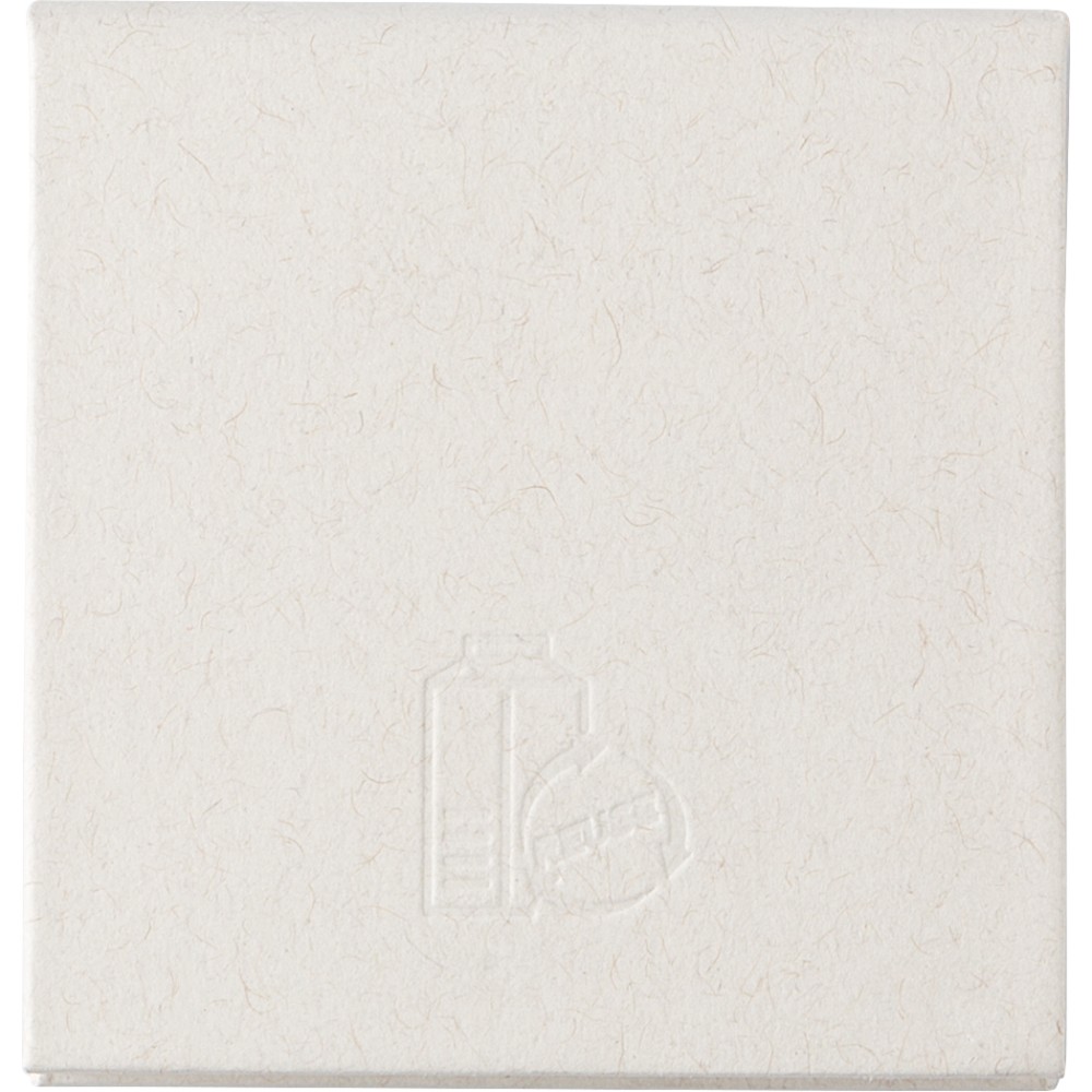 Újrahasznosított tejesdobozból készült jegyzetfüzet 200 sima lappal. 70%-ban újrahasznosított tejeskartonból és 30%-ban újrahasznosított papírból készült. Igazolóbélyegző a füzet hátuljának az alján.