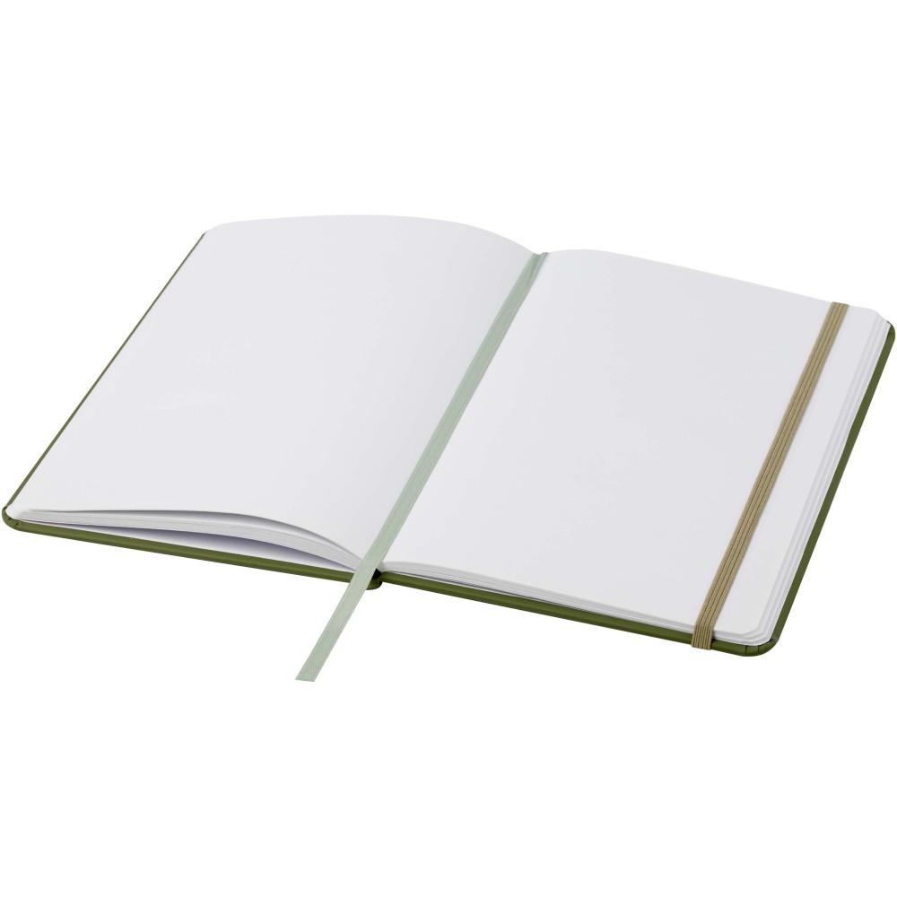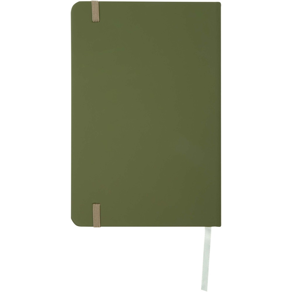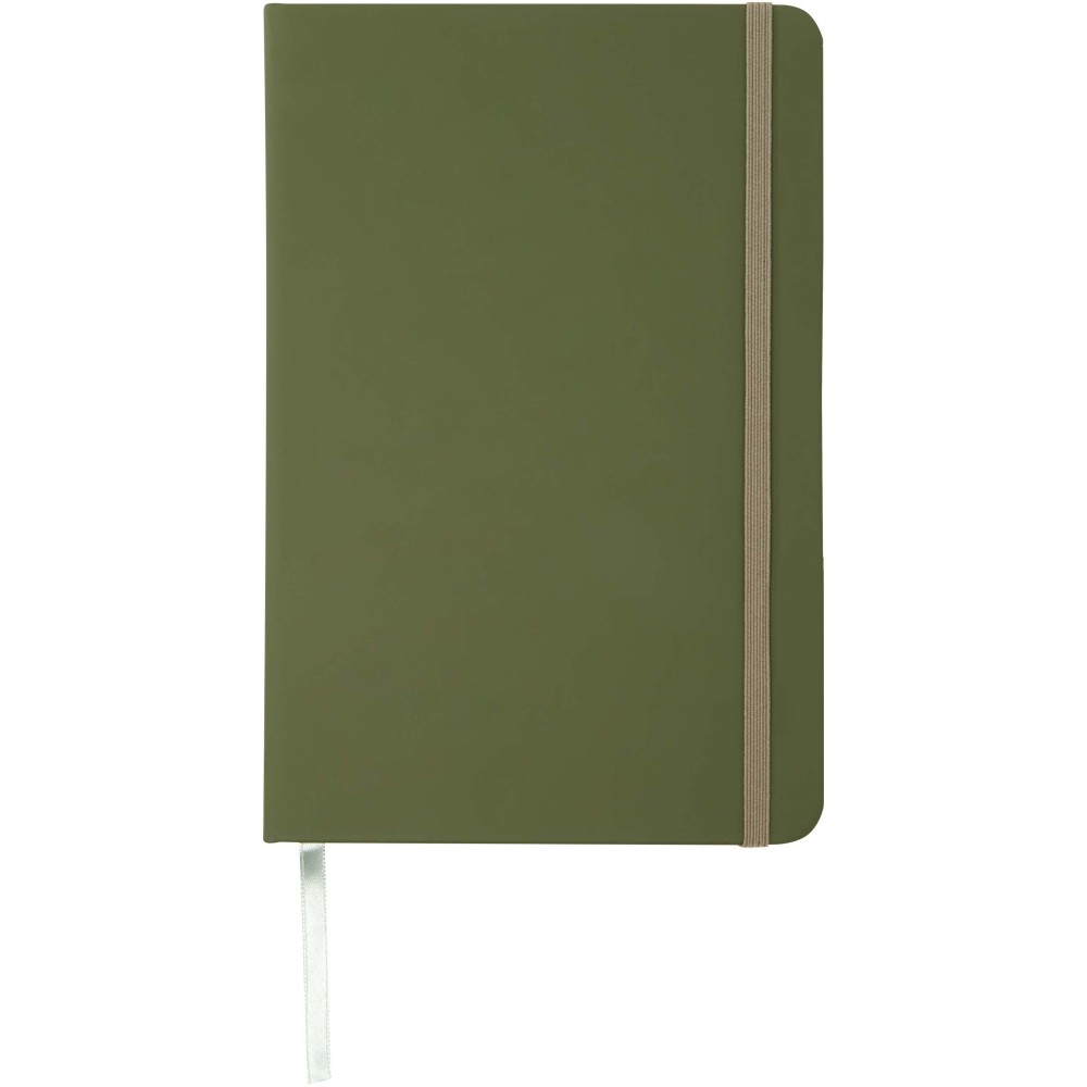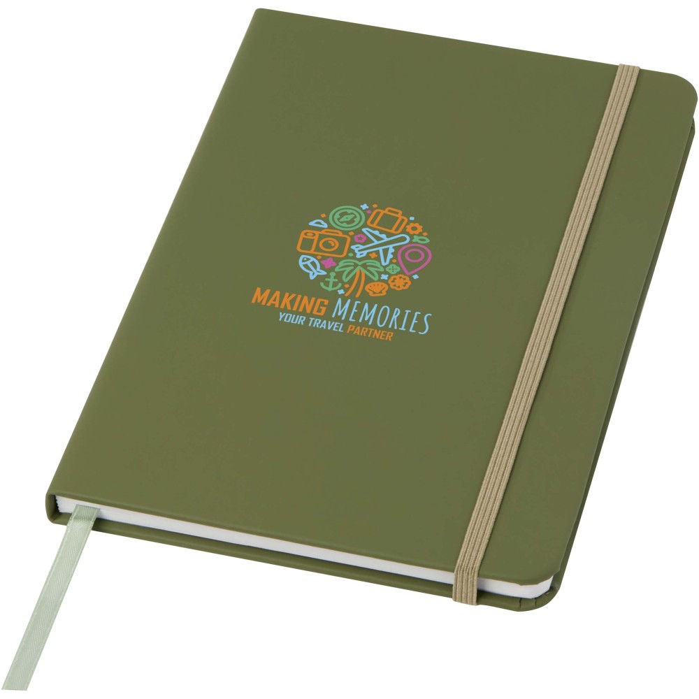 A5 jegyzetfüzet színben hozzáillő gumipánttal és jelölőszalaggal. 96 lapos.( (60g/m2). Sima lapok.