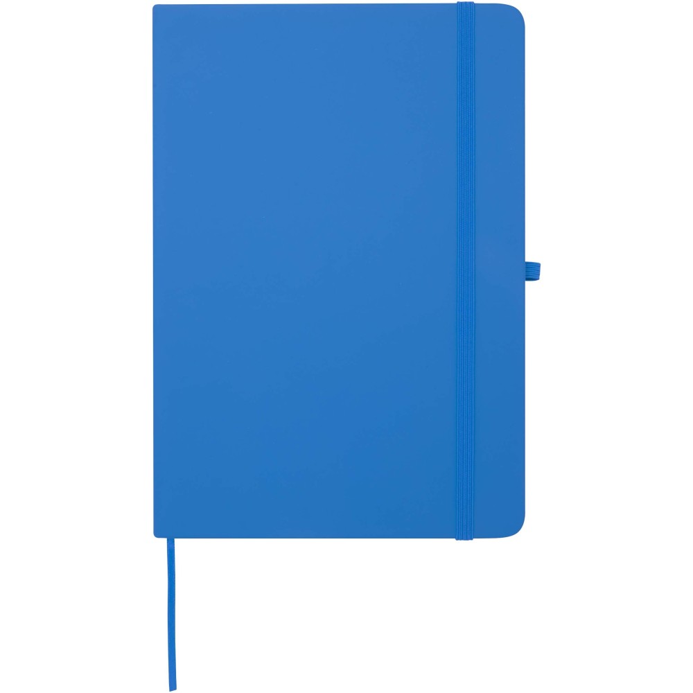 A Spectrum Plus A5 keményfedeles jegyzetfüzet lekerekített sarkokkal nemcsak az irodai mindennapok elengedhetetlen kelléke, hanem remek lehetőség márkád népszerűsítésére is. A jegyzetfüzet puha tapintású borítóval rendelkezik és 80 vonalas, krémszínű, 70 g/m2-es lapból áll, amely tökéletes gyors ötletek vagy hosszabb jegyzetek rögzítésére. A jegyzetfüzet tolltartó hurokkal, gumiszalagos záródással, könyvjelzővel és harmonikazsebbel van ellátva.
