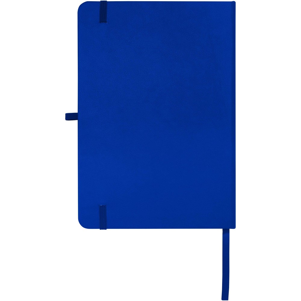 A Teak A5 méretű, újrahasznosított karton keménytáblás jegyzetfüzet lekerekített sarkokkal nemcsak irodai alapdarab, hanem kiváló lehetőség a márka népszerűsítésére is. A jegyzetfüzet 96 darab 70 g/m2-es vonalas lapot tartalmaz és puha tapintású borítóval rendelkezik. Beépített tolltartó hurokkal, rugalmas zárópánttal és könyvjelzővel van ellátva.