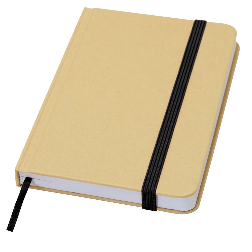 A Reed A6 méretű, újrahasznosított karton keménytáblás jegyzetfüzet lekerekített sarkokkal nemcsak irodai alapdarab, hanem kiváló lehetőség a márka népszerűsítésére is. A jegyzetfüzet 96 darab 70 g/m2-es üres lapot tartalmaz, és puha tapintású borítóval rendelkezik. Rugalmas zárópánttal és szalagkönyvjelzővel van ellátva.