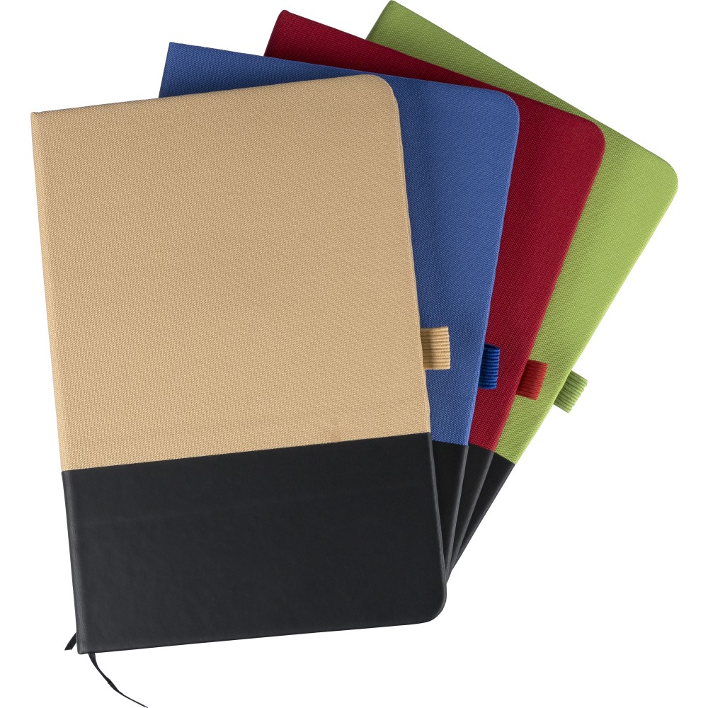 RPET poliészterből készült A5-ös jegyzetfüzet részben lézergravírozható PU előrésszel, amely gravírozás után a borító rPET anyagának színével egyező árnyalatot mutat. 80 lap 70 g/m2 vonalas papírt tartalmaz, gumipánttal, tolltartó hurokkal és könyvjelző szalaggal. Az alsó PU rész gravírozásra kialakítva, amely a megfelelő színt fedi fel.