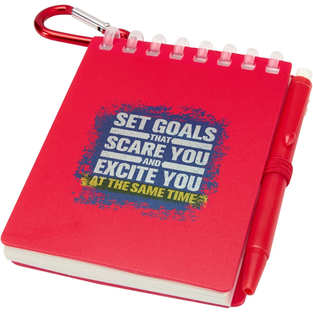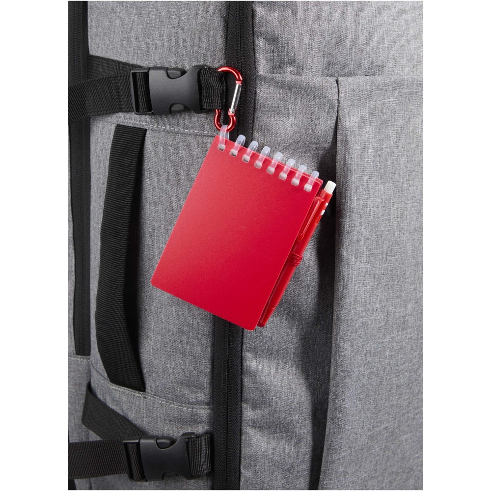 A Lig Mini jegyzetfüzet és toll szett kompakt és praktikus társ a gyors jegyzeteléshez útközben. A spirálfüzet puha, újrahasznosított műanyag borítással és 70 darab, 120 g/m2 súlyú, vízálló kőpapírból készült üres lappal rendelkezik, így ideális választás szabadtéri használatra is. A kerekített sarkokkal és beépített tolltartó pánttal ellátott kiegészítő tökéletesen követi a "mini" trendet, miközben teljesen funkcionális marad. A szetthez tartozó golyóstoll újrahasznosított ABS műanyagból készült, fekete tintával ír, íráshossza pedig 250 méter. A színben harmonizáló fémgyűrű segítségével a szett könnyen rögzíthető hátizsákra, táskára vagy kulcscsomóra, így tartós és hordozható megoldást nyújt a jegyzetek rögzítéséhez. A jegyzetfüzet mérete: 11 × 7,5 cm.